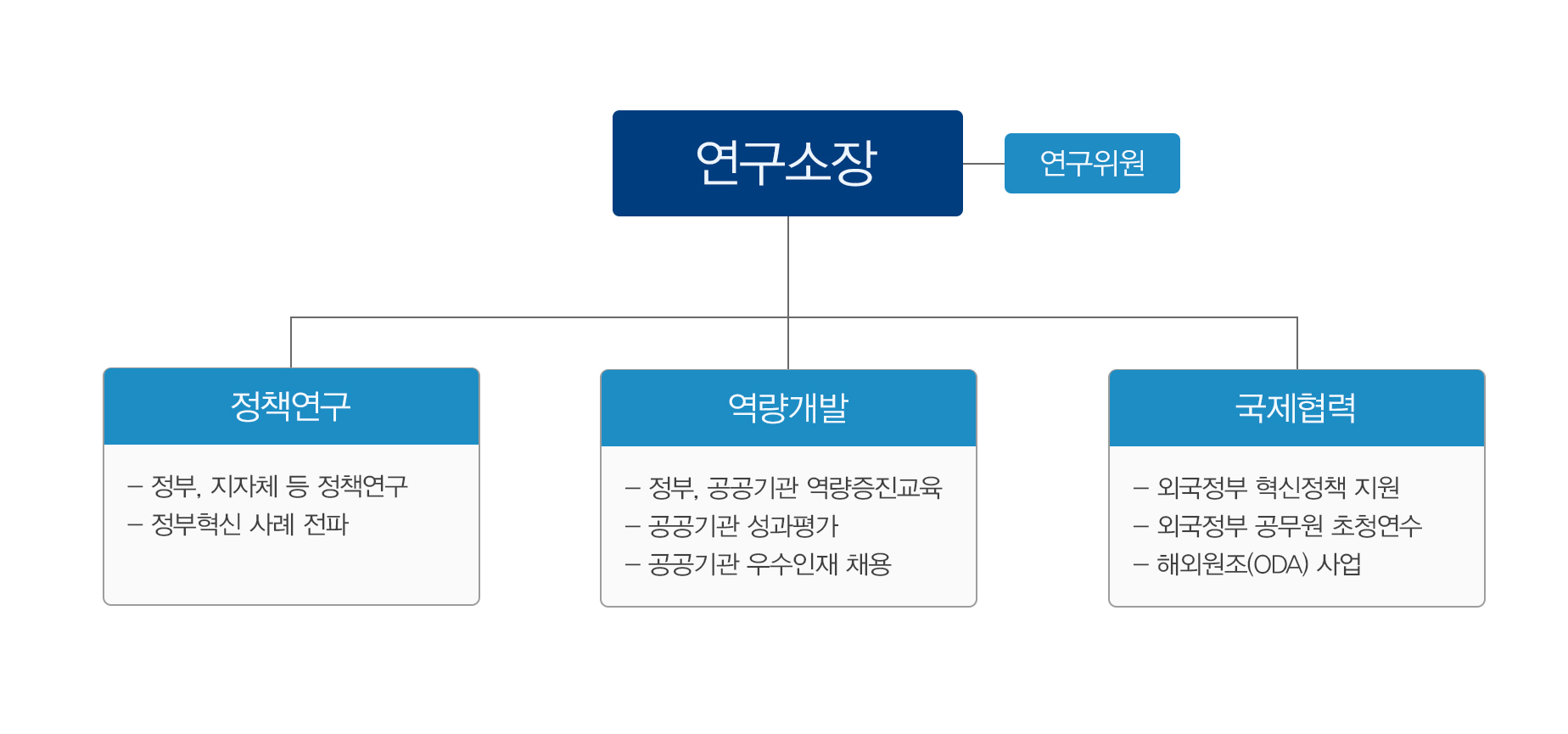 정부 및 공공기관 소속직원에 대해 리더십을 비롯한 각종 교육과 함께 정부기관에서 요청한 자치단체 및 공공기관의 업무수행 결과를 엄정히 평가